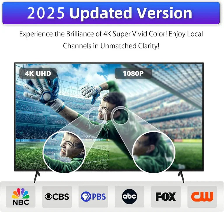 Equipped with advanced signal amplification technology and anti-interference filters, this antenna effectively blocks noise from mobile signals. Wherever you are, it stably captures signals for 120+ channels, delivering pristine 1080p and even 4K picture quality. Say goodbye to snowy screens and lagging—enjoy every detail in cinema-quality clarity.